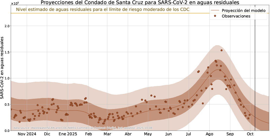 Proyecciones de COVID-19 en las Aguas Residuales del Condado de Santa Cruz