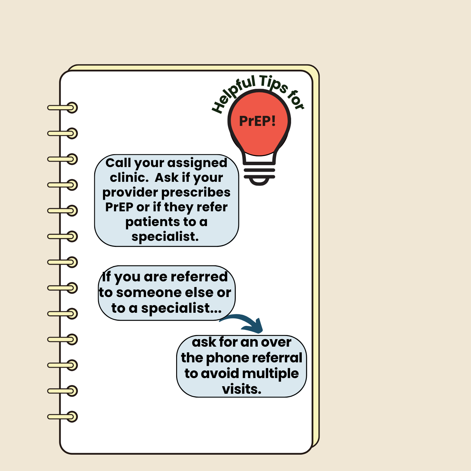 • While you are on PrEP, you will need to see a health care provider for regular check-ups, repeat HIV/STI screenings, lab tests, and prescription refills.