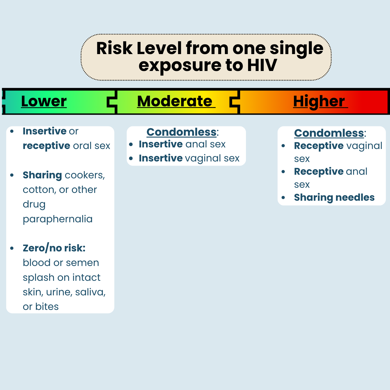 What are ways that I can be exposed to HIV and their level of risk?